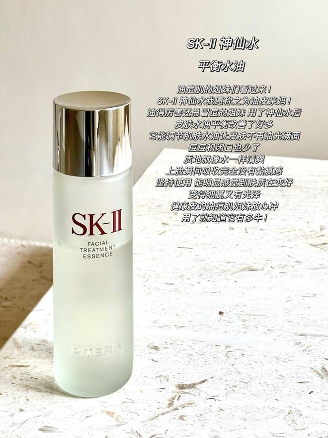 油痘肌的姐妹们看过来,SK-II神仙水我息称之为油皮亲妈,油得厉害还总冒痘的姐妹,用了神仙水后,皮肤水油平衡改善了好多,它能调节肌肤水油让皮肤不再油光满面,痘痘和闭口也少了。