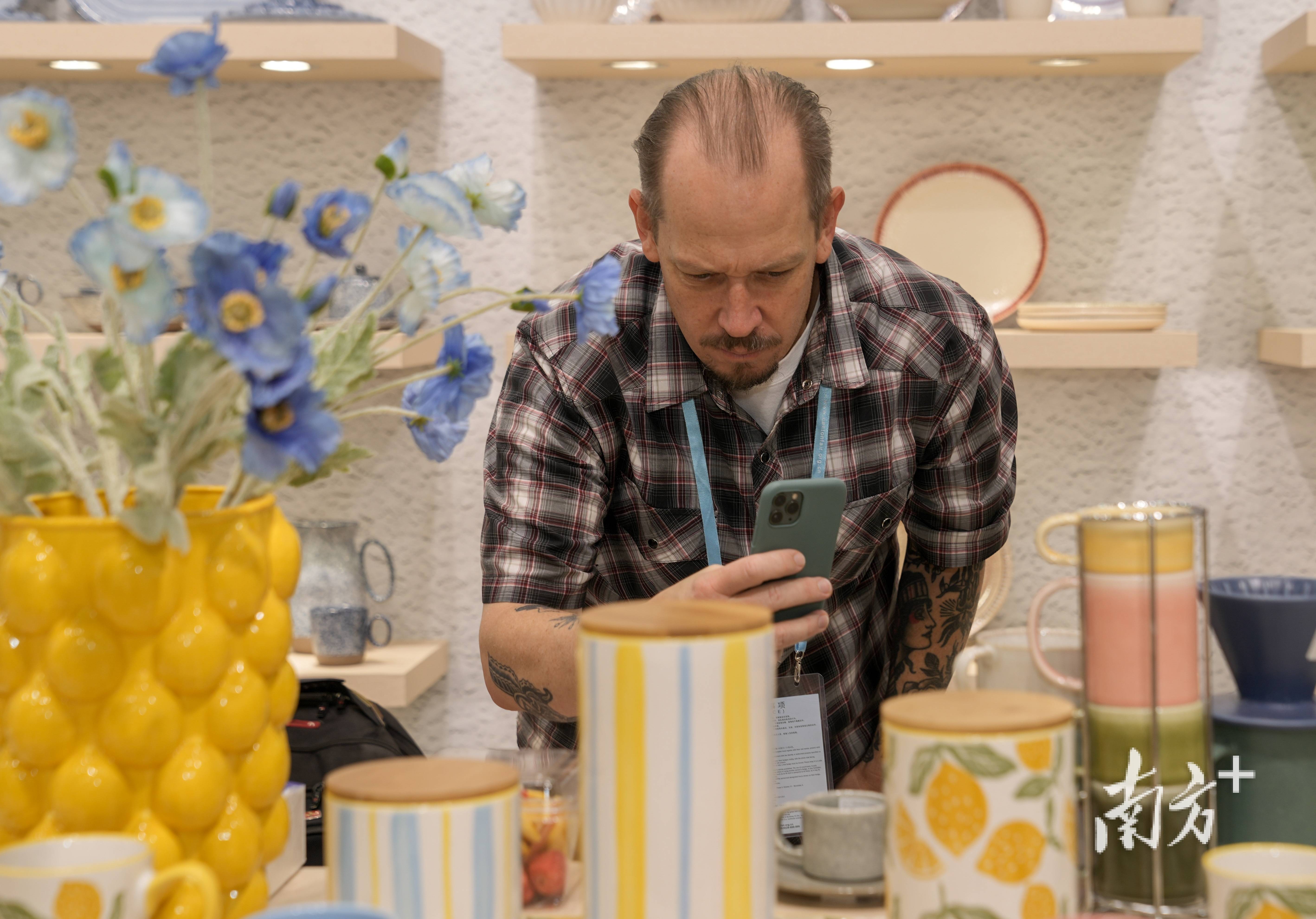 “这款产品的花盆,是我们创新用进口PE环保材料结合编织工艺制成的,既能达到接近藤编的质感,又具备更强的抗菌性,咨询热度一直居高不下。”公司总经理李俊伟说,本届广交会他们带来了300多款产品,其中新品占比超90%;目前正逐步丰富仿真绿植、花卉、香薰机等产品系列,靠“绿色+创新”打造差异化竞争优势。